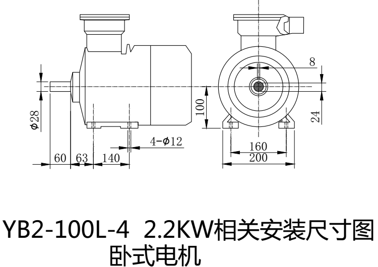 YB2系列防爆電機由于其具有高效節(jié)能、低噪聲、長壽命、高可靠性的特點,所以在國內(nèi)是被應(yīng)用最廣的防爆電機。今天跟大家解讀一下YB2-4-2.2KW臥式防爆電機的安裝尺寸圖都代表什么。