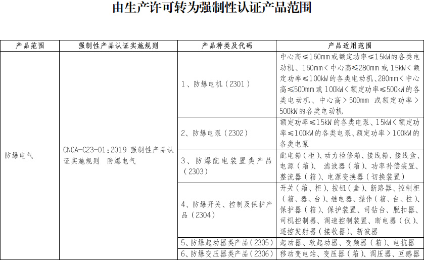 按市場監(jiān)管總局2019年34號文要求,自2019年10月1日起,防爆電氣產(chǎn)品納入CCC認證管理范圍。2020年10月1日前,國內(nèi)企業(yè)生產(chǎn)的以上產(chǎn)品應憑有效生產(chǎn)許可證或CCC認證出廠、銷售或在其他經(jīng)營活動中使用。對于已獲生產(chǎn)許可證的企業(yè),若以上產(chǎn)品在2020年10月1日(含)后不再繼續(xù)生產(chǎn)的,無需辦理CCC認證;否則,應盡快提交認證委托,并在2020年10月1日前獲得CCC認證。