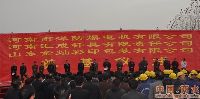 11月14日上午,縣工業(yè)集聚區(qū)彩旗飄飄,軍樂陣陣,南洋防爆機(jī)電、河南匯成釬具、滕州金燦彩印等三家招商引資企業(yè)舉行奠基儀式?h委書記劉政帶領(lǐng)縣四個(gè)班子領(lǐng)導(dǎo)出席開工典禮并為三個(gè)項(xiàng)目培土奠基。