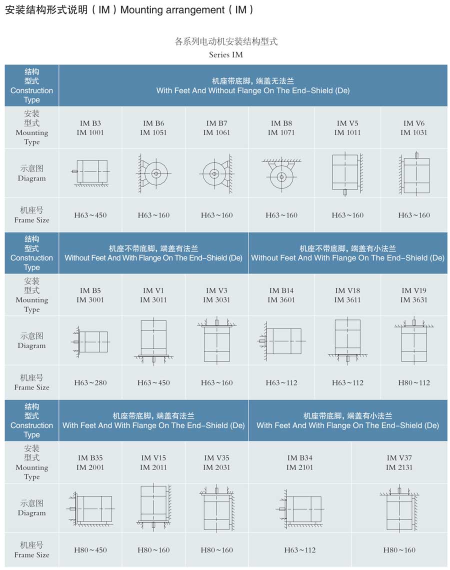 4.機座號225及以下采用封閉軸承,225以上帶有再潤滑結構;